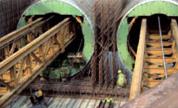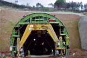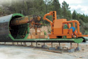 Telescopic full round Tunnel Formworks Telescopic, "full round" multi-section formwork ideal to achieve continuous advancement or block jets. Accessories include pneumatic or electric side-wall vibration, jet spray system with articulated feed piping, service carriages, concrete mixing trains with Trainmix with a capacity ranging from 2.5 to 11 mc and trolley-mounted pumps on skid. |